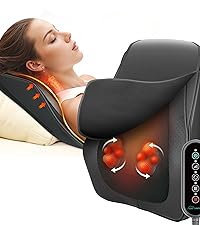 This Neck and Shoulder massager features 16 powerful deep-shiatsu kneading nodes that target muscle soroness, neck stiffness, and daily fatigue. The soothing infrared heat boosts blood circulation while a 15-minute auto shut-off ensures total safety.